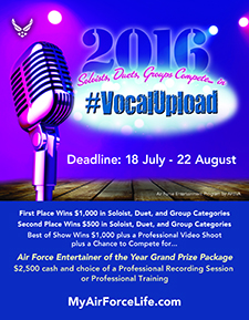 #VocalUpload#VocalUpload promotional materials currently available for order. Air Force Services will cover the cost, including shipping, of the promotional materials.Questions? Please call Gary Reed at 210-829-7515 or email to gary@ncgraphics.com.